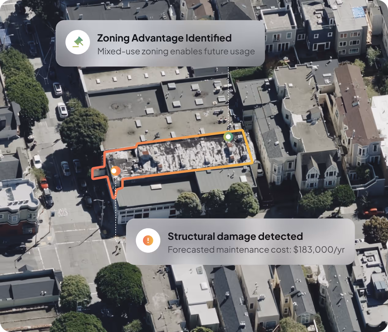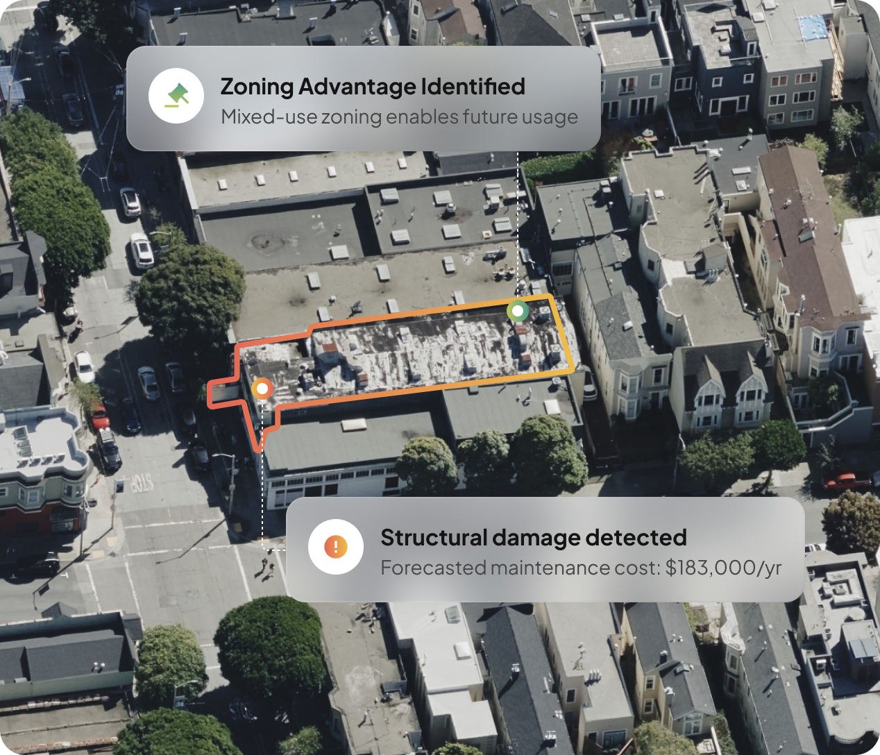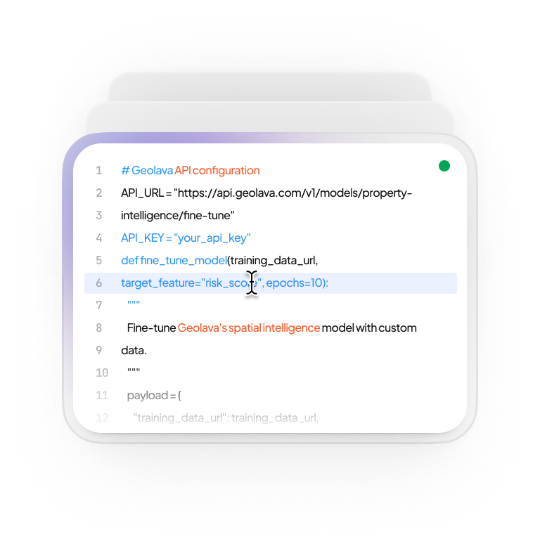 Geolava models the evolving physical world, continuously translating spatial features into advantage, exposure, or future upside across assets